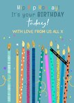 "Hip Hip Hooray! It's your birthday today! With love from all of us all x". 'With love from all of us all x' can be personalised!