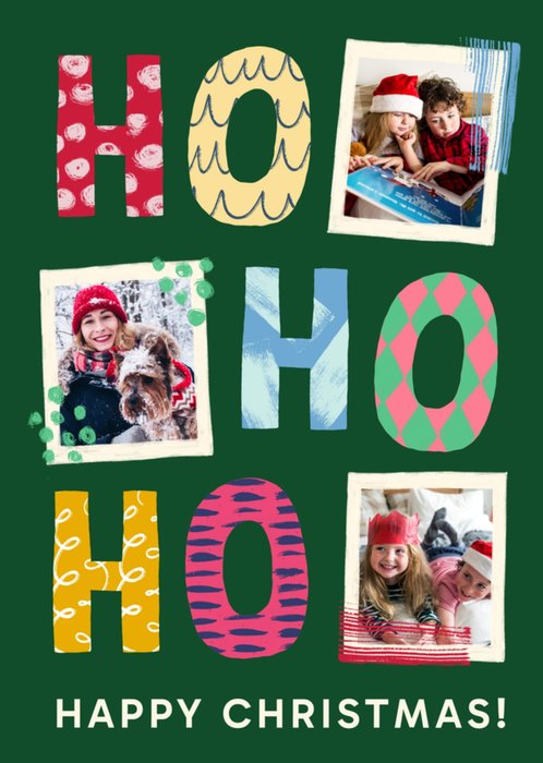 A modern design featuring bold, patterned lettering arranged around 3 rectangular photo frames. The design sits on a warm green background.