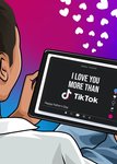 Features an illustration of a person on their tablet on social media.