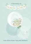 The card reads: "A christening wish, godson, lots of love from ciara and micheal x".