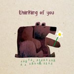 Illustration of subdued bear sitting on the ground holding a daisy.