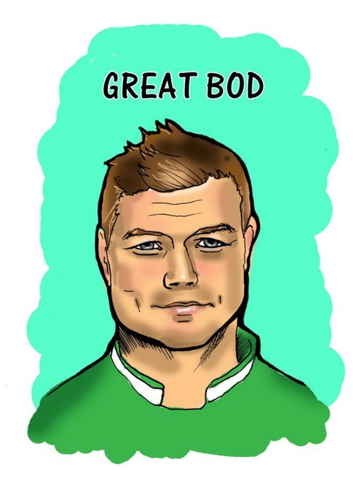 Illustrated portrait of Brian o'Driscoll on a green background.