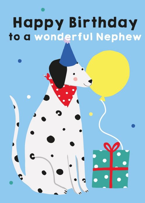 Illustrated Cute Party Hat Dalmation Dog Happy Birthday To A Wonderful Nephew