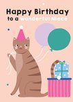 Illustrated Cute Party Hat Stripy Cat Happy Birthday To A Wonderful Niece