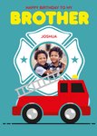 Illustrated Fire Truck Photo Upload Brother Birthday Card