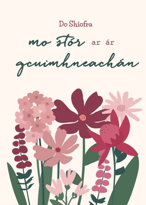 Illustrated Floral Design Ãr Gcuimhneachán Aniversary Card
