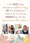 "I will miss being with you on mothers day, but im holding you close in my heart and thoughts all the way, from across the miles x" Photo upload card.