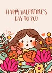 Illustrated Girl With Flowers Valentine's Card