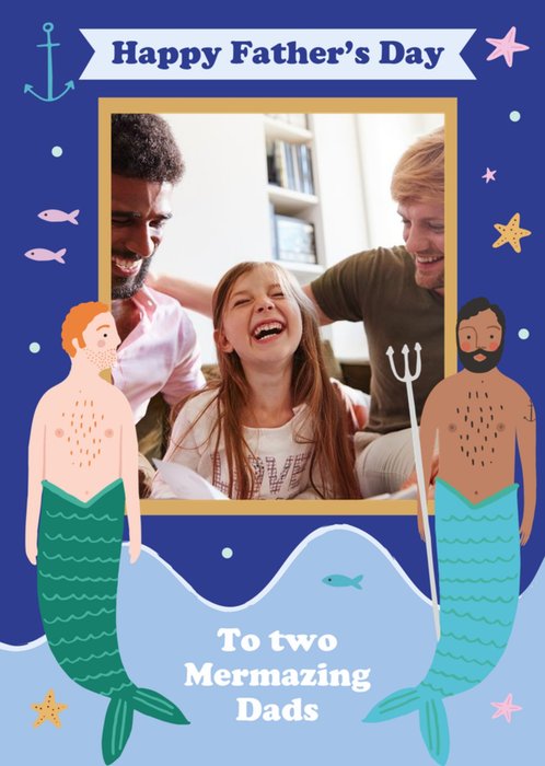 Illustrated Happy Father's Day To Two Mermarizing Dads Card