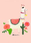 Illustrated Llama Merci Thank You Card