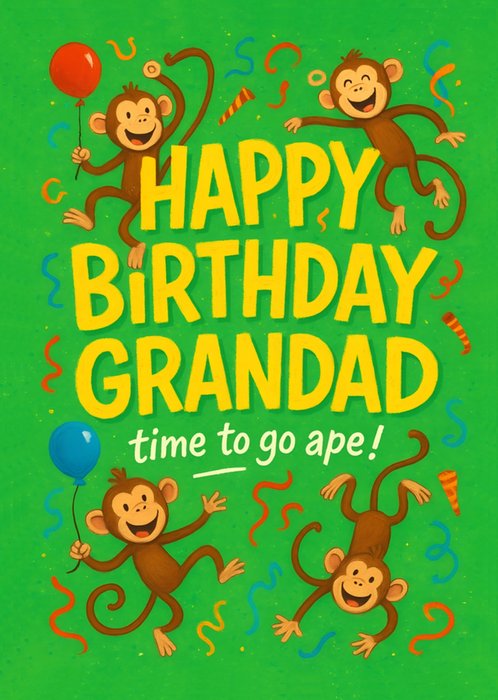 Illustrated Monkey Go Ape Grandad Birthday Card