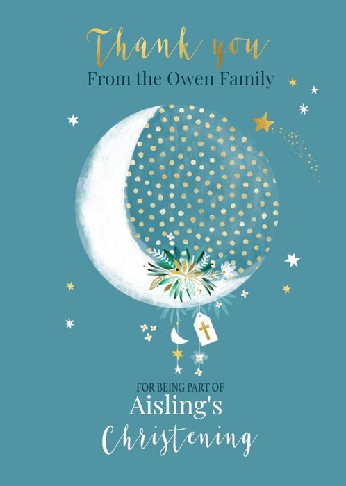 The card reads: "Thank you, from the owen family, for being part of aislings christening".