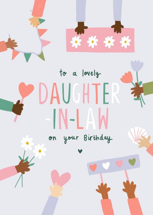 The card reads: "To A Lovely Daughter In Law On Your Birthday".
