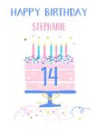 "Happy birthday Stephanie 14". 'Stephanie' and '14' can be personalised!