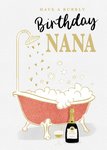Illustration Of A Bubble Bath With A Bottle Of Bubbly Nana's Birthday Card