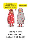 "This is as naked as I'm prepared to get" , "Phwoar!" and "have a hot anniversary, Sarah and Dave! 'Have a hot anniversary, Sarah and Dave!' can be personalised!