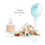 Illustration Of A Cute Dog With A Cake And A Balloon Birthday Card