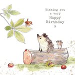 Illustration Of A Hedgehog A Mouse And A Bird Birthday Card