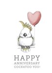 Illustration Of A Pair Of Cockatoos With Heart Shaped balloons Anniversary Card