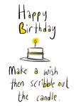 Text reads: "Happy Birthday" and "make a wish then scribble out the candle".