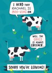 "I herd that Rachael is moo-ving on", "well, the grass is always greener..." and "sorry you're leaving!". 'Rachael' can be personalised!