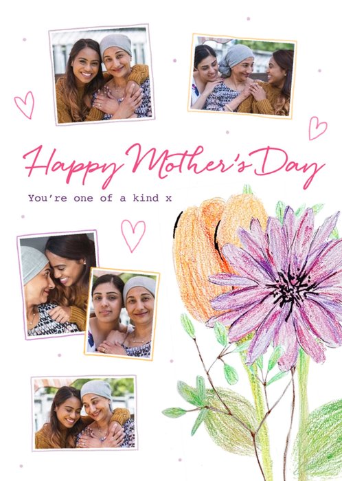 Illustration Of Flowers With Five Photo Frames Mother's Day Photo Upload Card
