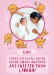 "Mum thank you for all you do, you're caring and kind, and sweeter than laddoo!". 'Mum' can be personalised!