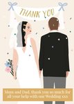 "Thank you" and "Mum & Dad, thank you so much for all your help with our wedding xxx". 'Mum & Dad, thank you so much for all your help with our wedding xxx' can be personalised!