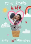 Illustration Of Two Koalas In A Heart Shaped Hot Air Balloon Photo Upload Wife's Anniversary Card