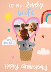 Illustration Of Two Koalas In A Heart Shaped Hot Air Balloon Photo Upload Wife's Anniversary Card