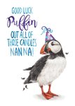 Illustration Puffin Good Luck Puffin Out Candles Nanna Birthday Card