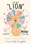 Text reads: "I'm not lion you're the mane attraction 10 today happy birthday to our lovely Daughter". '10' and 'to our lovely Daughter' can be personalised!