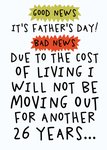 "Good News, it's Father's Day! Bad news, due to the cost of living I will not be moving out for another 26 years..."