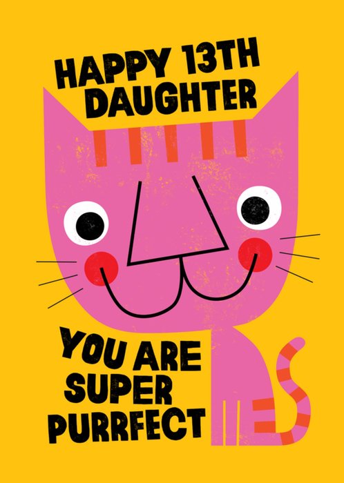 Featuring a fun illustration of pink tabby cat with a smiley face.