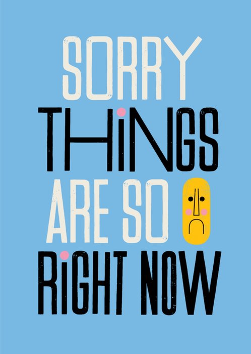 Featuring large, bold text with a sad yellow face illustration on a light blue coloured background.