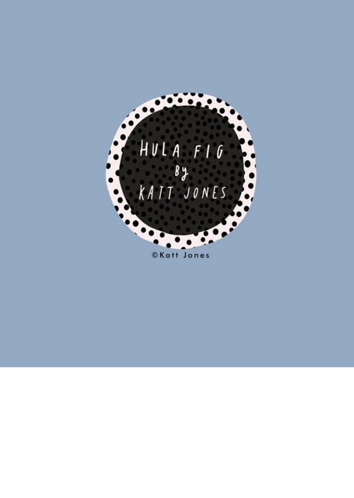 Back of Card: Katt Jones Hula Fig logo. Moonpig logo.