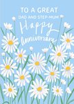 "TO A GREAT DAD AND STEP-MUM Happy Anniversary" with editable relation/name text.