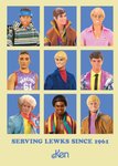 Features a grid of 9 photos of different Kens in different cool outfits over the years.