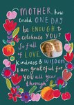 A beautifully illustrated Mother's Day card featuring a heartfelt message of gratitude surrounded by vibrant floral and fruit elements. The elegant design conveys love, kindness, and appreciation, making it a perfect way to honour a special mum. The card includes a space for a personalised photo, adding a meaningful touch.