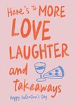 "Here's to more love, laughter and takeaways. Happy Valentine's Day."