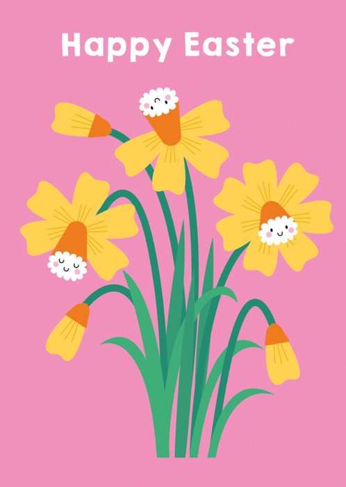 Front of card: Featuring a bright & bold hand-painted 70's illustration of flowers wearing bell bottoms with colourful hand-written typography above and below, all on a purple background.