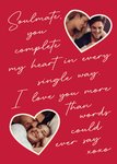 Text reads: "Soulmate, you complete my heart in every single way. I love you more than words could ever say xoxo."