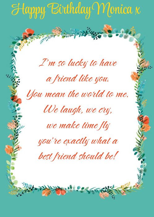 Lucky To Have A Friend Like You Floral Verse Birthday Card
