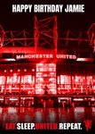 "Happy Birthday Jamie. Eat. Sleep. United. Repeat". Name can be personalised.