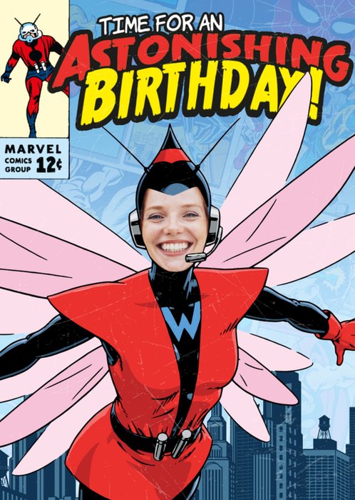 Featuring a retro illustration of The Wasp with a face upload frame.