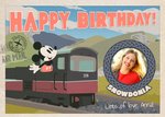 Mickey Mouse is in the driving seat of the the famous UK landmark Snowdon Mountain Railway, with Snowdonia in the background. There is also a photo upload frame, with editable text below it.