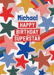 Mifkins Playful And Happy Superstar Illustrated Stars And Rainbows Birthday Card