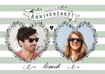 Mint Stripes And Framed Hearts Personalised Happy Anniversary Card