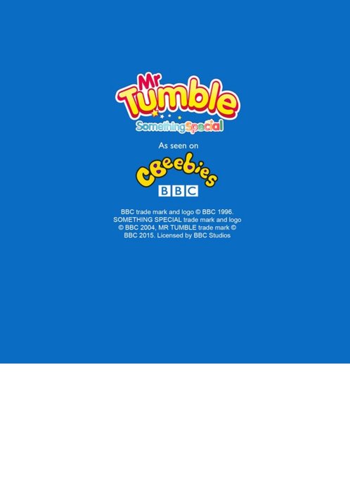 Front of card: Mr Tumble Something Special 2 Today Birthday Card Features a brightly coloured illustration of Mr Tumble stood next to a large yellow number 2 on blue stripy background. Text reads: "2 Today Happy Birthday Harley!". Name is customisable.