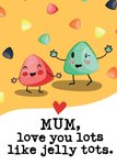 Illustrated jelly tots sweets and hand written lettering on a yellow background.